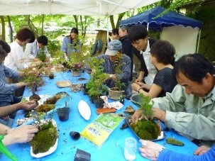 「みやび盆栽」も、はじめて出展し、2日間で100人以上の来場者の方々に、苔玉つくりを体験していただくことができました。