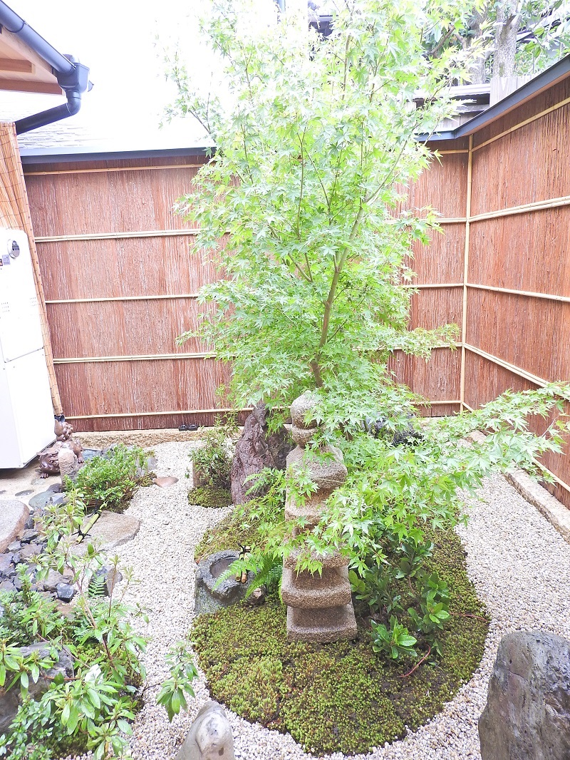2016年に創作した、京都御苑内にある宗像神社境内の庭をご覧になり、近々建てる自宅にも、このような雰囲気の庭が欲しい、とのことでご注文をいただきました。