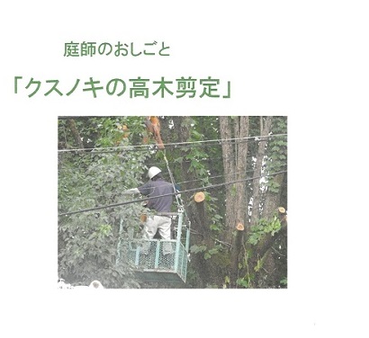 高さ約25mのクスノキを、クレーンを用いて剪定しました
