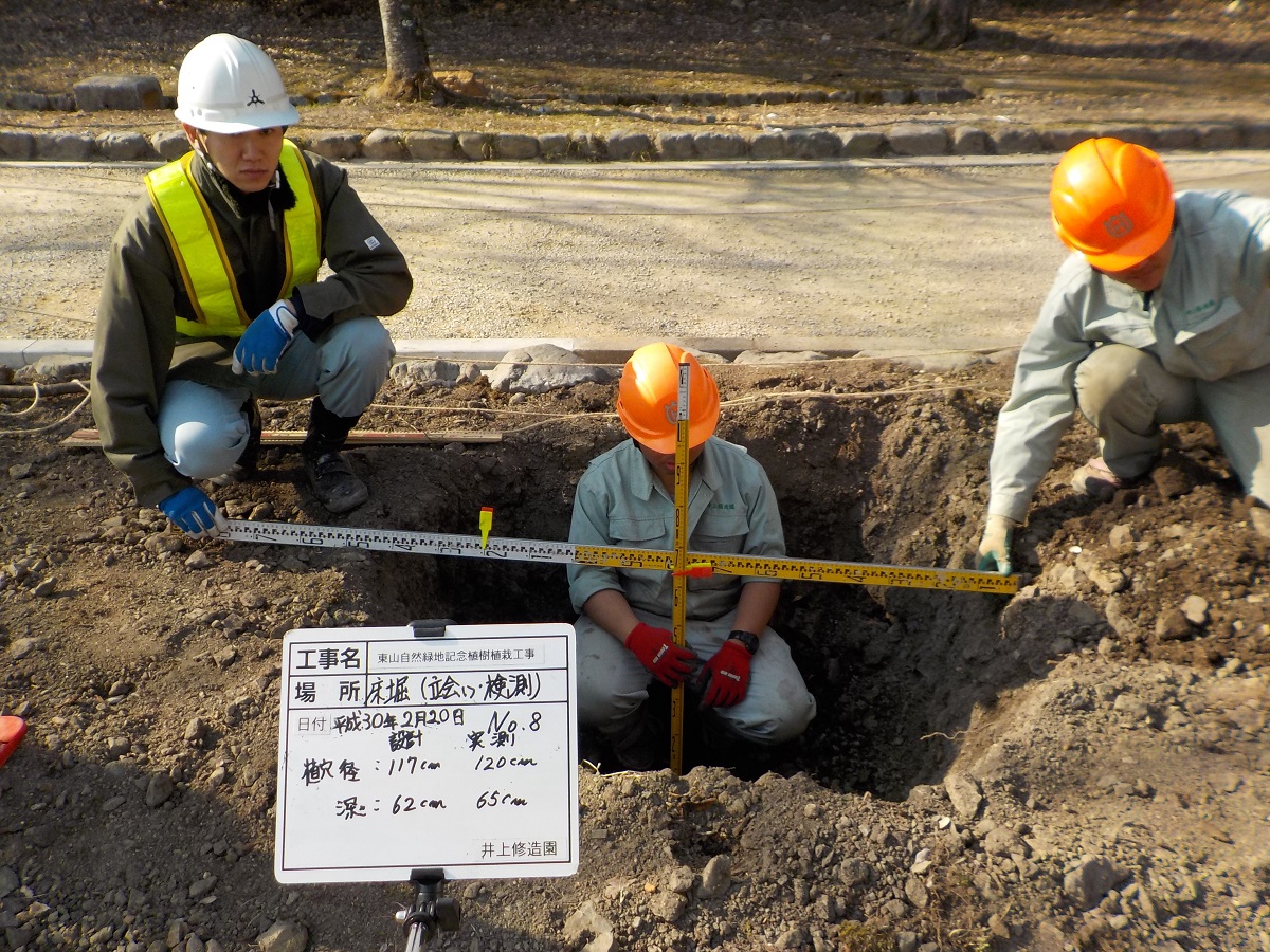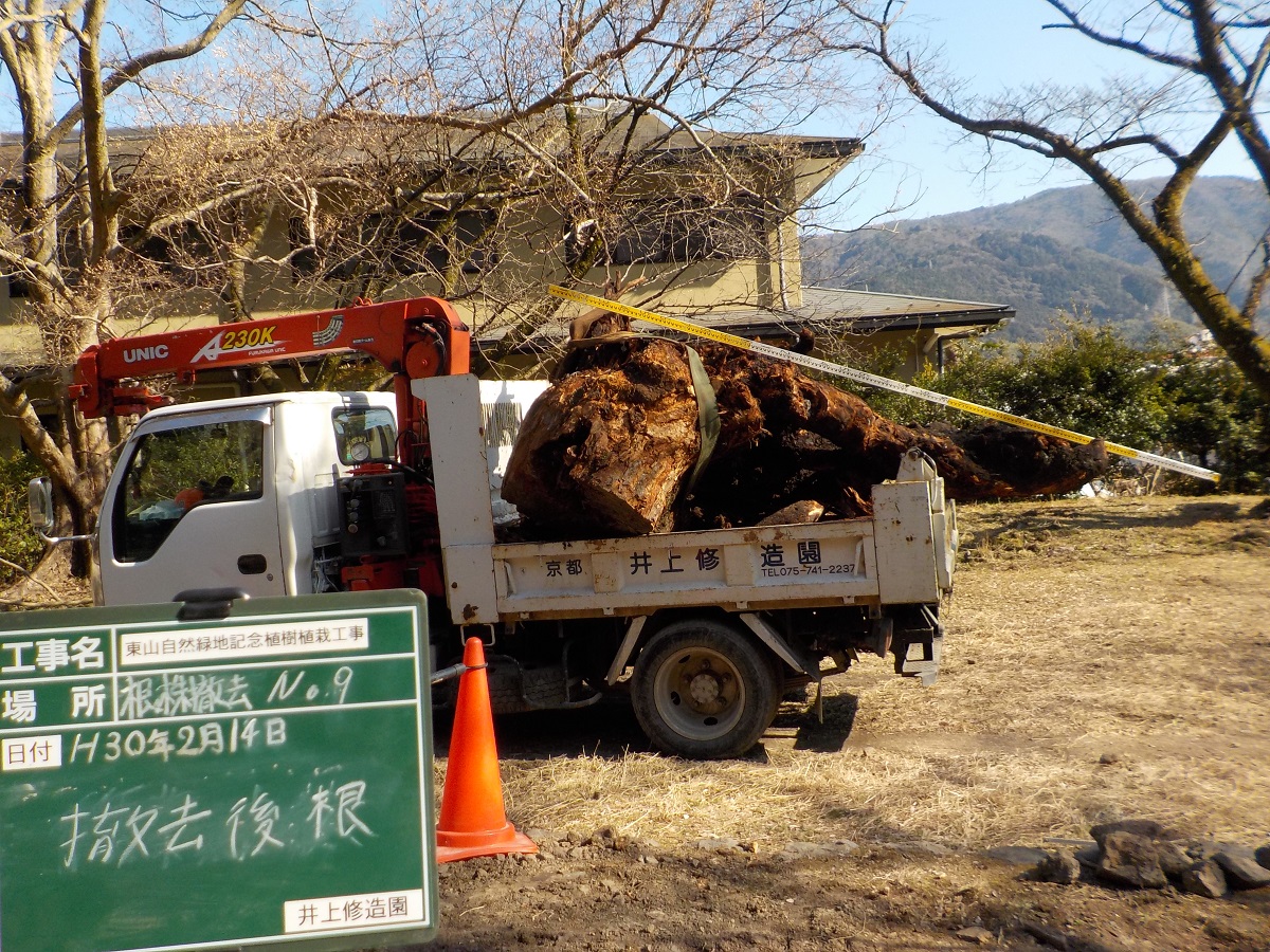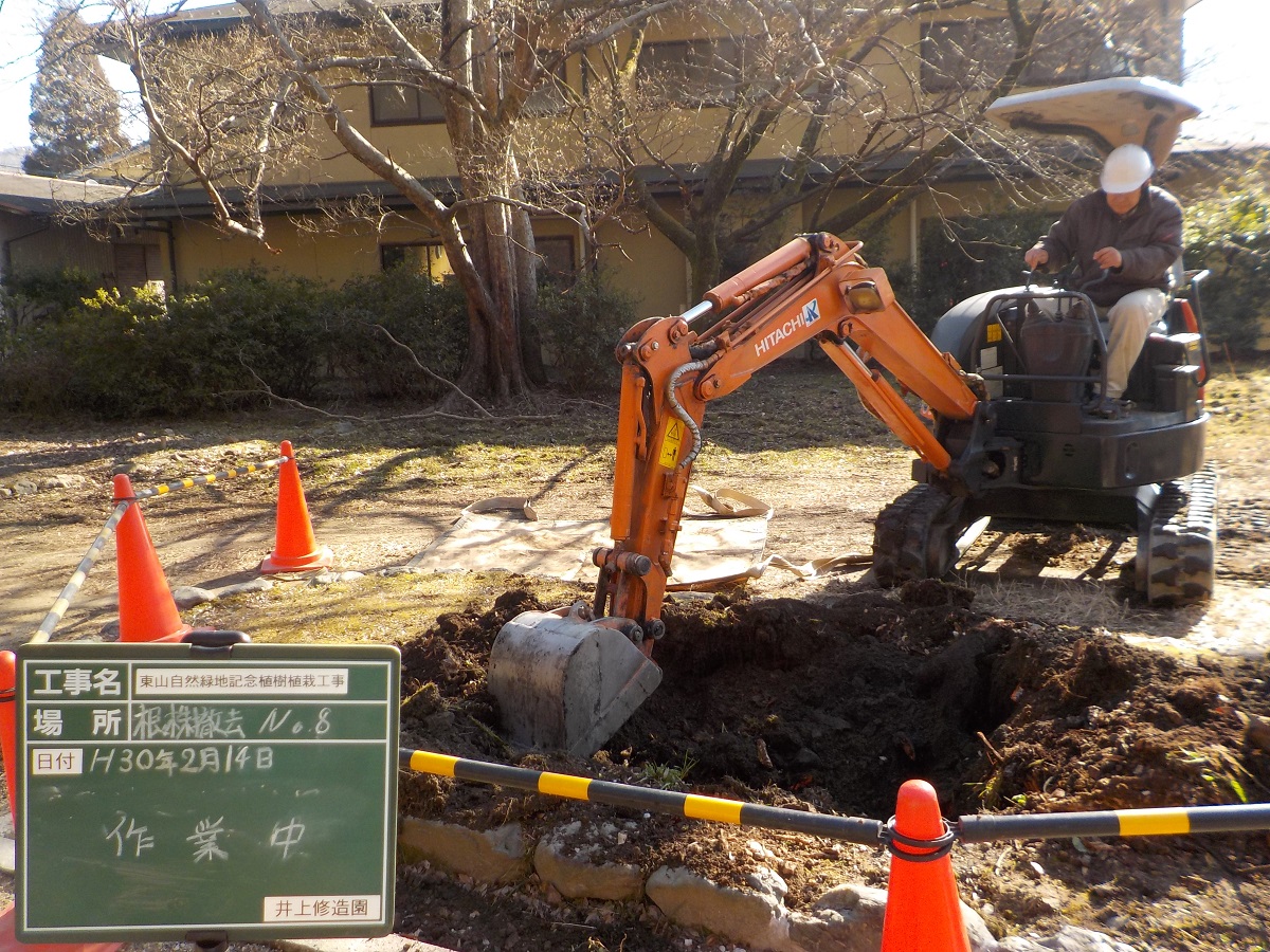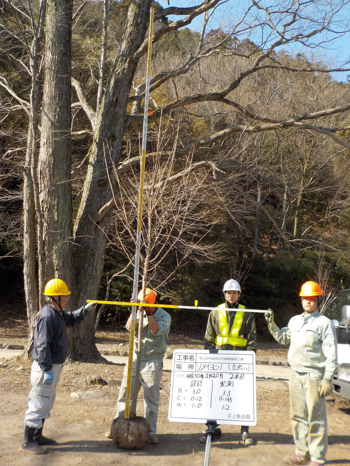 今回、井上修造園が担当したのは、山科疎水近くの東山自然緑地(山科区四ノ宮柳山町)の散策路です。ソメイヨシノを10本植樹しました。