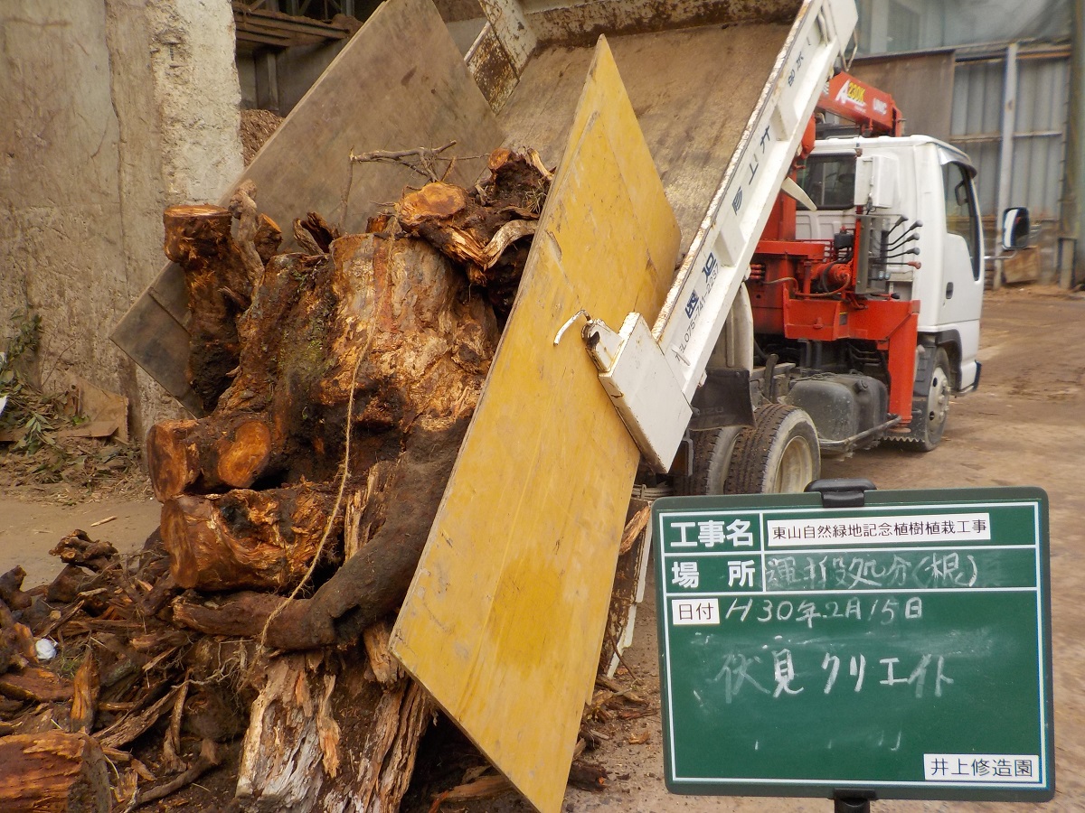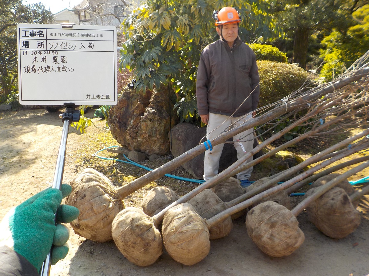 預けておいたソメイヨシノ10本が現場に運ばれてきました。