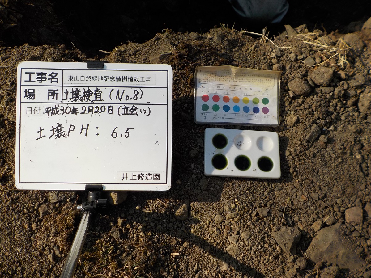 それぞれの場所で、土壌のPH(酸性・アルカリ性の度合い)を計測します。