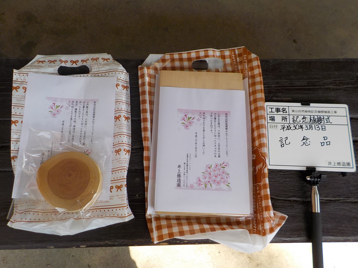このたび植樹をされた方々に、施工業者の井上修造園から記念品を進呈しました。