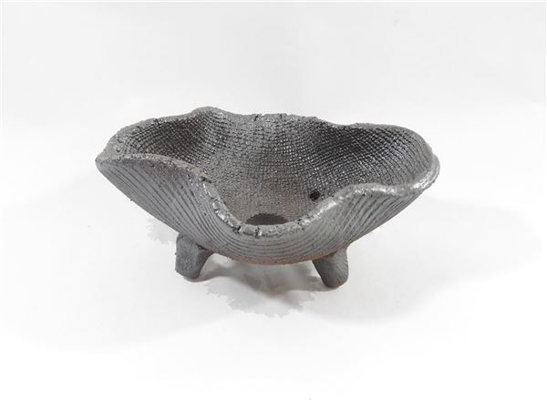 鉢:足付き信楽焼・手作り品(長径20p・短径18p)