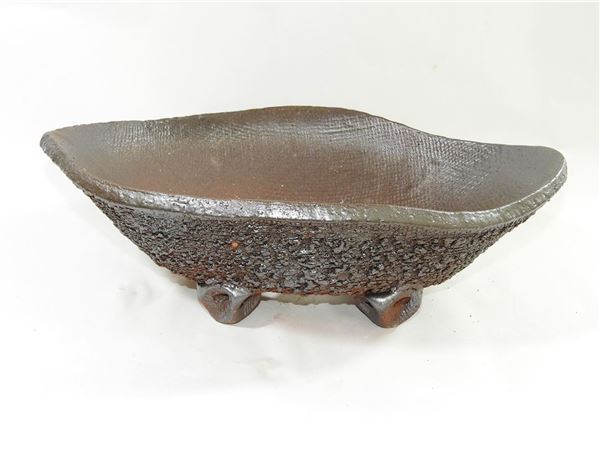 鉢:足付き信楽焼・手作り品(長径33p・短径21p)