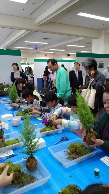 「みやび盆栽」も、はじめて出展し、2日間で100人以上の来場者の方々に、苔玉つくりを体験していただくことができました。