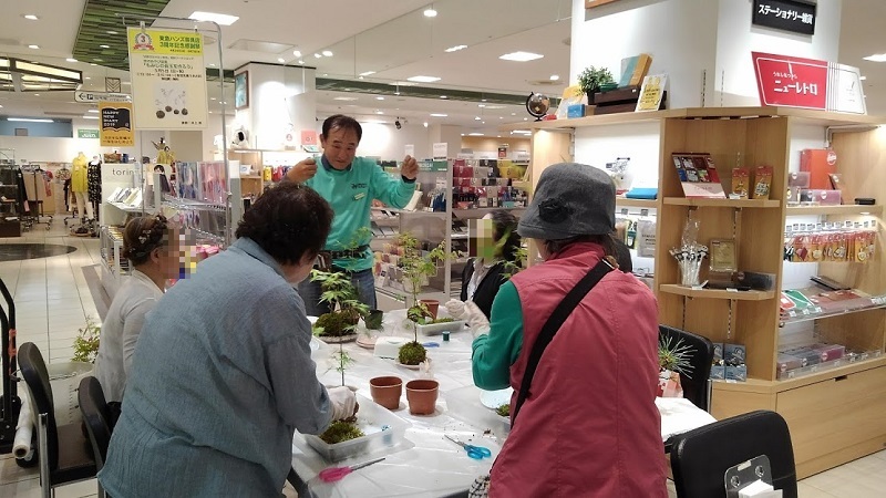 先月23日にご案内した、東急ハンズ奈良店ワークショップ みやび盆栽「もみじの苔玉を作ろう」が、2019年5月5日(日・祝)に開催されました。