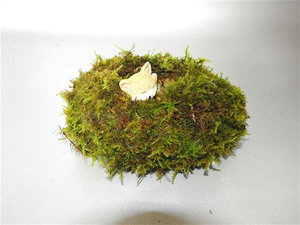 苔玉の大きさは直径12cmほど。珍しい“竹の盆栽”を使って作ります。